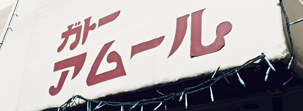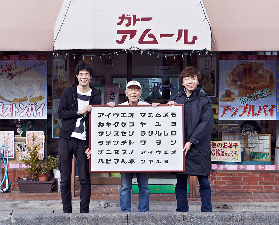「アムール」は1971年に現店主の阿部さんが幸福堂(仙台にあった洋菓子店)での修行を経て、もともと父が経営していた洋菓子の卸業から製造業に転身して作ったお店だ。アムールという屋号の意味はフランス語で「幸福」。書体は包装紙を作るときに印刷会社の方がデザインしたものを採用した。以来ずっと使っているそうだが、アムールは石巻市の都市計画のため店舗を移動しなければならない可能性があるそうだ。「続けたとしても、いいとこ2、3年じゃないかね。やめるか、工場を小さくして続けるか、迷ってるっていうか。歳だしね。おれの母ちゃんだって、70だし。本当は若い人が継いでくれたらいいんだけどね。もし、ほとんど(土地を)とられても、ケースだけでも置いて商売できたらと思うけどね。とにかくやれるうちは、やる。」もし、移転しても今の書体の看板とともに、人々を幸福にするお菓子を作り続けてほしい。