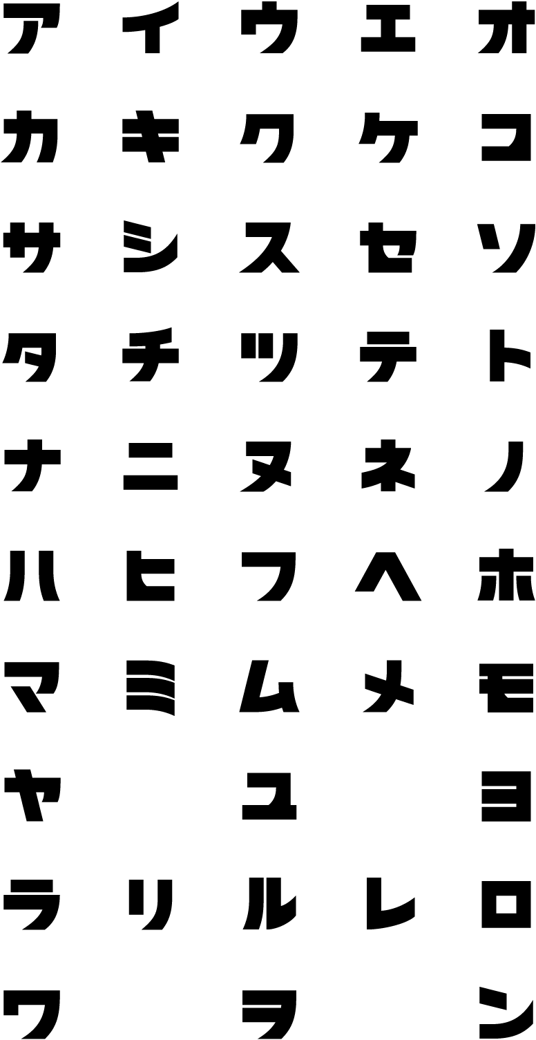 文字の細部を整え過ぎないことで作り出された味わい。それによってカタカナの持つ記号性に、暖かみのある人間味が加味されている。