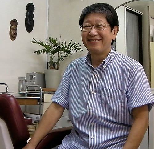 「サン理容室」は1974年に開業したお店。「サン」という書体は一代目で現店主でもある、冨田さん自身がデザインしたそうだ。「意味は"太陽"。お年寄りから子どもさんまでふらっと寄ってもらえる、親しみのある明るいイメージがいいと思いました。別の店で職人として働きながら独立を考えているときから、屋号や書体は考えていました。実は、はじめは先のとんがっている書体を作って使っていたんですが、やっぱり鋭すぎちゃって。始めの書体は自分の気分で描いていたので、今度は自分でルールをつくって、そのルールに則って作ってみた。それが今の書体です。」そのルールとはタテ線を細く、ヨコ線を太くする、という普通の書体とは逆の法則を持つもの。線の端は緩やかなラウンドを持つ。当初の理念である明るく親しみのあるイメージにぴったりの書体ができあがった。