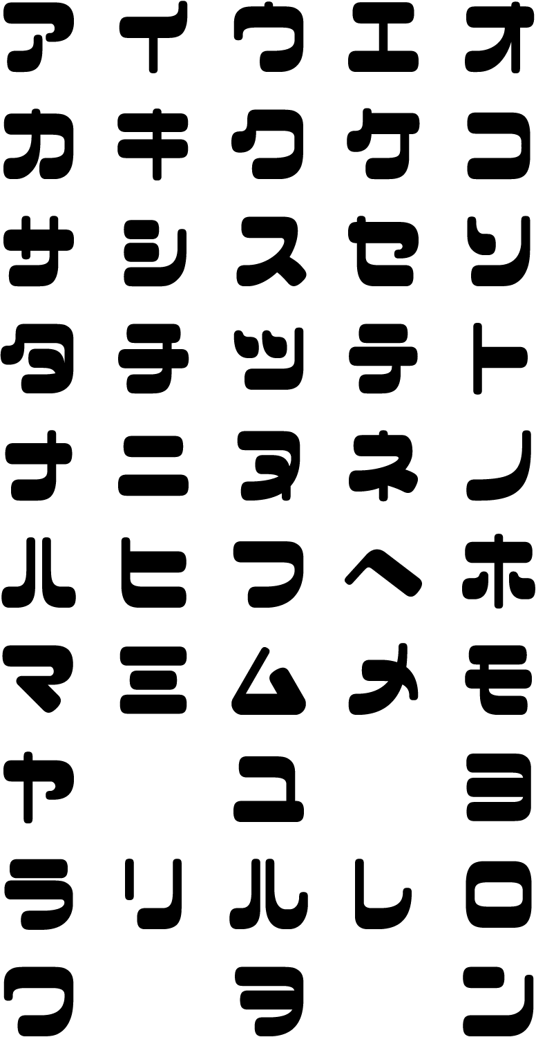 タテ棒とヨコ棒の太さが逆転している、あまのじゃくな可笑しみの漂う書体。しかしよくよく見ると、どこか優しく、人間くさいのだ。