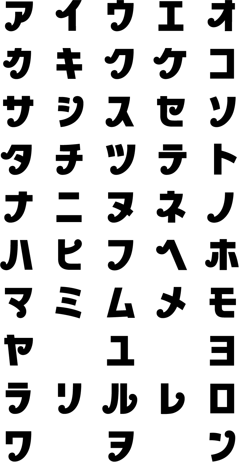 視線が文字の中にある丸みに、ゆるゆると吸い込まれていく…。この魅惑的な丸い膨らみが、この書体にキッチュな脱力感を与えているのである。