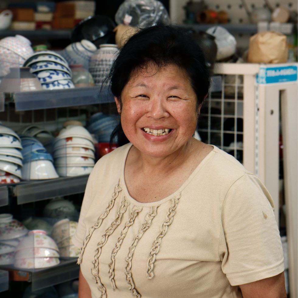 「山口陶器店」は700年前ほどに7軒の家が立ち、飯田町ができた頃から店のルーツがあるという。先々代の店は「山口富士商店」といい、陶器以外にも炭や木炭などの卸売をしていた。現店主の外美子さんは東京の銀行を退職してお店をついだ。看板は昭和50年頃に地元の看板屋さんが作ったと思われる。商店街の自営業者は話好きで、当時は毎日のようにお店に話をしに来ていたそう。「物を買うとかじゃなくて、もう本当に集会場みたいになってました。座る場所もないから、みんな勝手に椅子なんか持ってきて…」現在ではお店を訪れるのは地元の高齢者の数人。売上の大部分はオンラインでの販売だという。奥の大きな蔵には、昭和時代の古い器や窯が多く眠っている。レトロな品物は人気だそう。予約待ちの品物もあるという。飯田町商店街組合の理事長でもある外美子さん。町内に配布物を届けたりもする。「周囲のみなさんに助けられて今があるので、自分が協力できることはできるだけ協力しようと思いました」昔から地元をつないできたお店なのかもしれない。